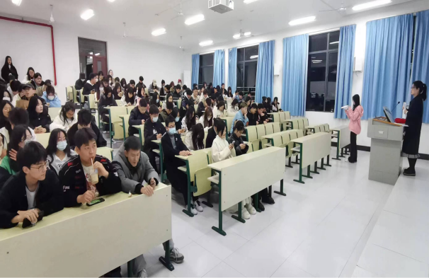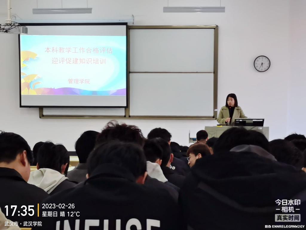 尹玲娜老师则是重点让学生们更加深入了解我院的各方面知识,也为学生们指明了本科教学工作合格评估的方向,促进了学生们参与合格评估的积极性。周蕾老师同样给学生们对于本科教学评估做出重要讲解,让学生们明确评估流程,讲解评估知识以及学院建设。