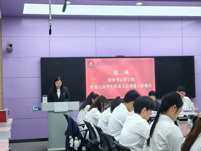 张宇欣向大会汇报了学代会筹备情况。她指出,筹备工作自2025年10月启动,成立了专项筹备委员会,下设材料、会务、宣传、保障四个工作组,系统完成了代表产生与资格审查、文件起草、会议组织等各项任务。
