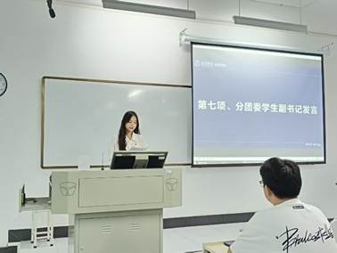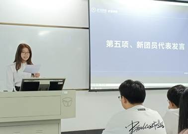 管理学院分团委学生副书记韦婷婷作总结发言。希望大家勤奋学习,在知识的海洋中汲取营养;坚定理想信念,牢记入团初心,树立远大理想;树立良好的精神风貌,做到至信而深厚、融通而致用;充分发挥团员模范带头作用,严于律己,用自己的言行影响、带动身边的同学,传递青春正能量。
