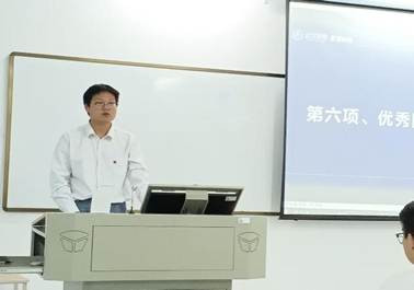 大数据管理与应用2402班屈安鑫作为优秀团员代表发言。对全体新团员发出号召:做有信仰的青年,以坚定的信仰守住精神底色;做有理想的青年,以远大的理想远扛起时代使命;做有担当的青年,在责任践行中锤炼真本领。