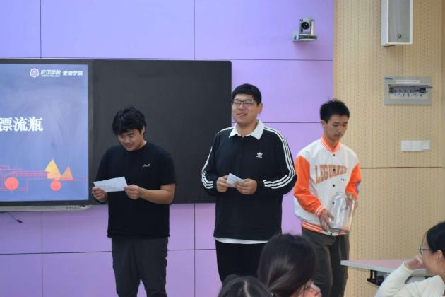 座谈共鸣,深情分享凝聚志愿力量。“湖小青”活动结束后,吴宇军组织志愿者们进行了座谈交流,座谈会在管理学院学生志愿服务主题短片的温情放映中拉开序幕,校团委书记陈怡向全体青年学子发出倡议:“有事情找志愿者,有时间做志愿者”,号召青年学子以志愿精神为指引,将爱心转化为行动,在服务他人、奉献社会中书写青春答卷。