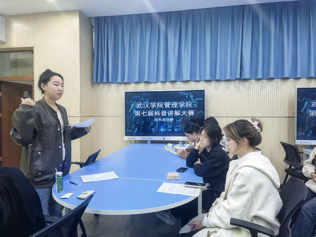 为了激发大学生对科学的兴趣与热爱,发现和培养优秀的科普传播人才,营造“爱科学、学科学、用科学”的良好学术氛围。2025年11月7日,武汉学院管理学院第七届科普讲解大赛院系选拔赛在学2302教室举办。
