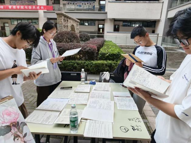 活动当天,参评的同学们前往2号学院楼提交笔记本,不少同学主动与同伴分享自己的笔记和心得,言语间满是对交流知识的渴望。尤其是大一新生,翻阅他们的笔记,能看到从“歪歪扭扭的重点标注”到“逐渐清晰的知识脉络”的变化,一笔一画都记录着他们初入大学时“把知识装进本子,也装进心里的”努力。其余展示的笔记本也各具特色,有的字迹工整、条理清晰,将知识点梳理得一目了然;有的图文并茂、重点突出,用图表与批注勾勒出知识框架;还有的融入个人思考,用独特的标注方式展现对知识的深度理解,既彰显了扎实的学习态度,也体现了个性化的思维方式与学习方法。