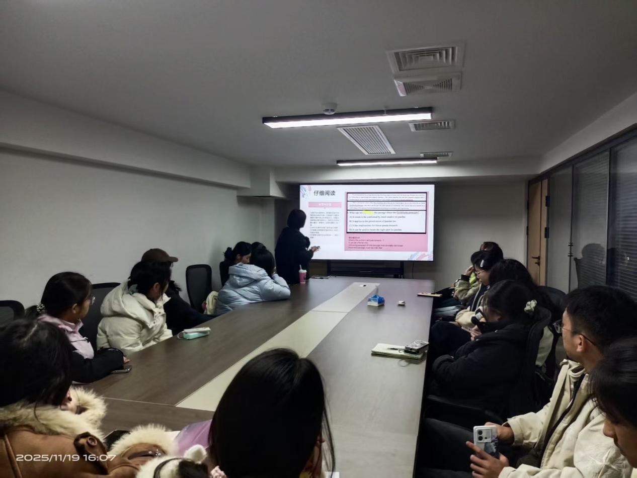 为帮助同学们有效备战大学英语四级考试,提升阅读板块解题能力,11月19日下午,管理学院“学业加油站”第七期活动在梅菊学生一站式服务社区204举行。本期主题为“四级阅读通关指南”,主讲小老师由人力资源管理2401余梦蝶同学担任。