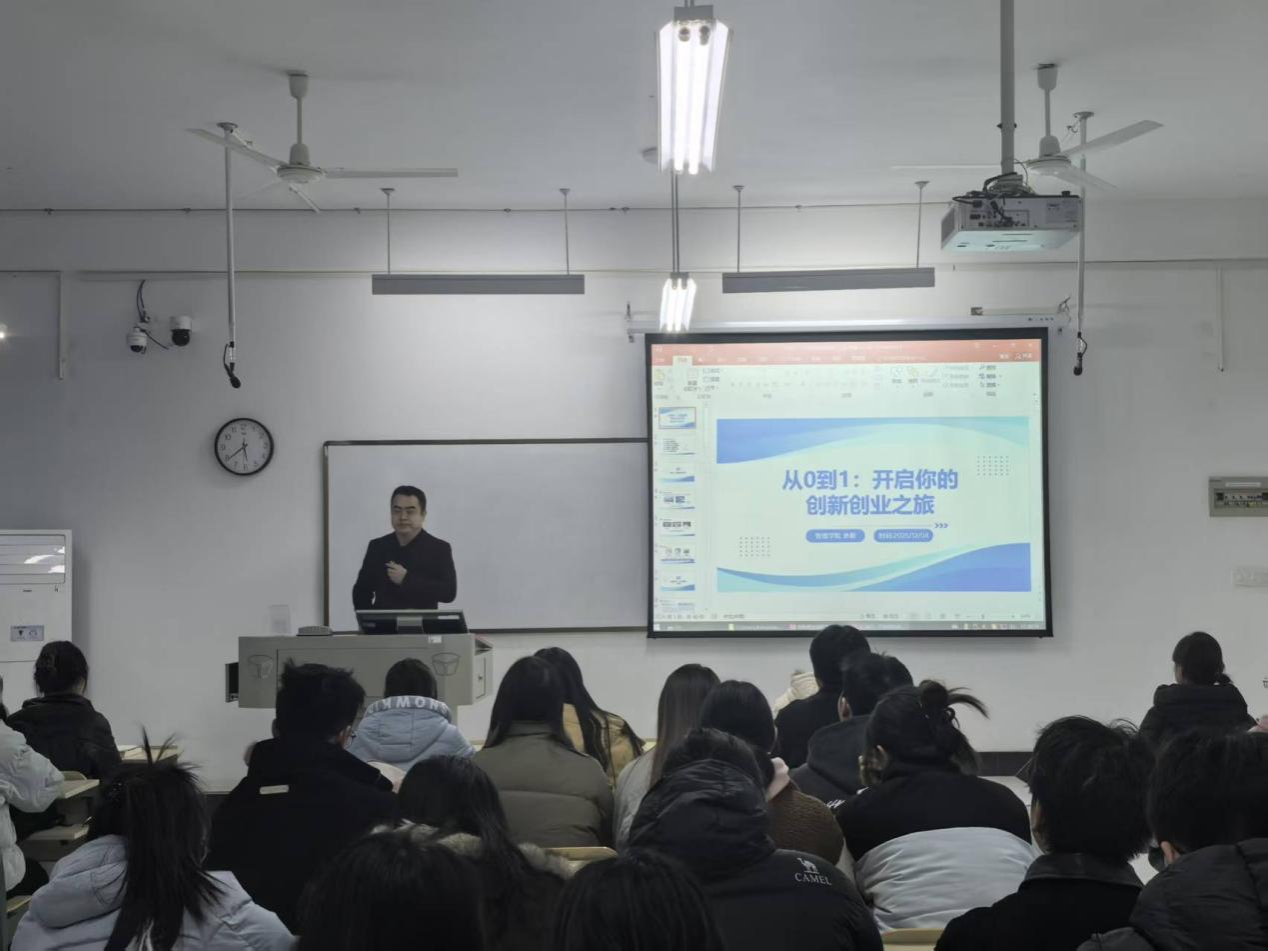 王桂红结合学院近年来在创新创业领域的丰硕成果,通过一系列生动鲜活的校友创业案例与竞赛获奖故事,向同学们展现了创新实践的多元可能与独特魅力。鼓励同学们要敢于突破思维定式,勇于将灵感火花转化为具体行动,在探索与实践中实现自我成长。