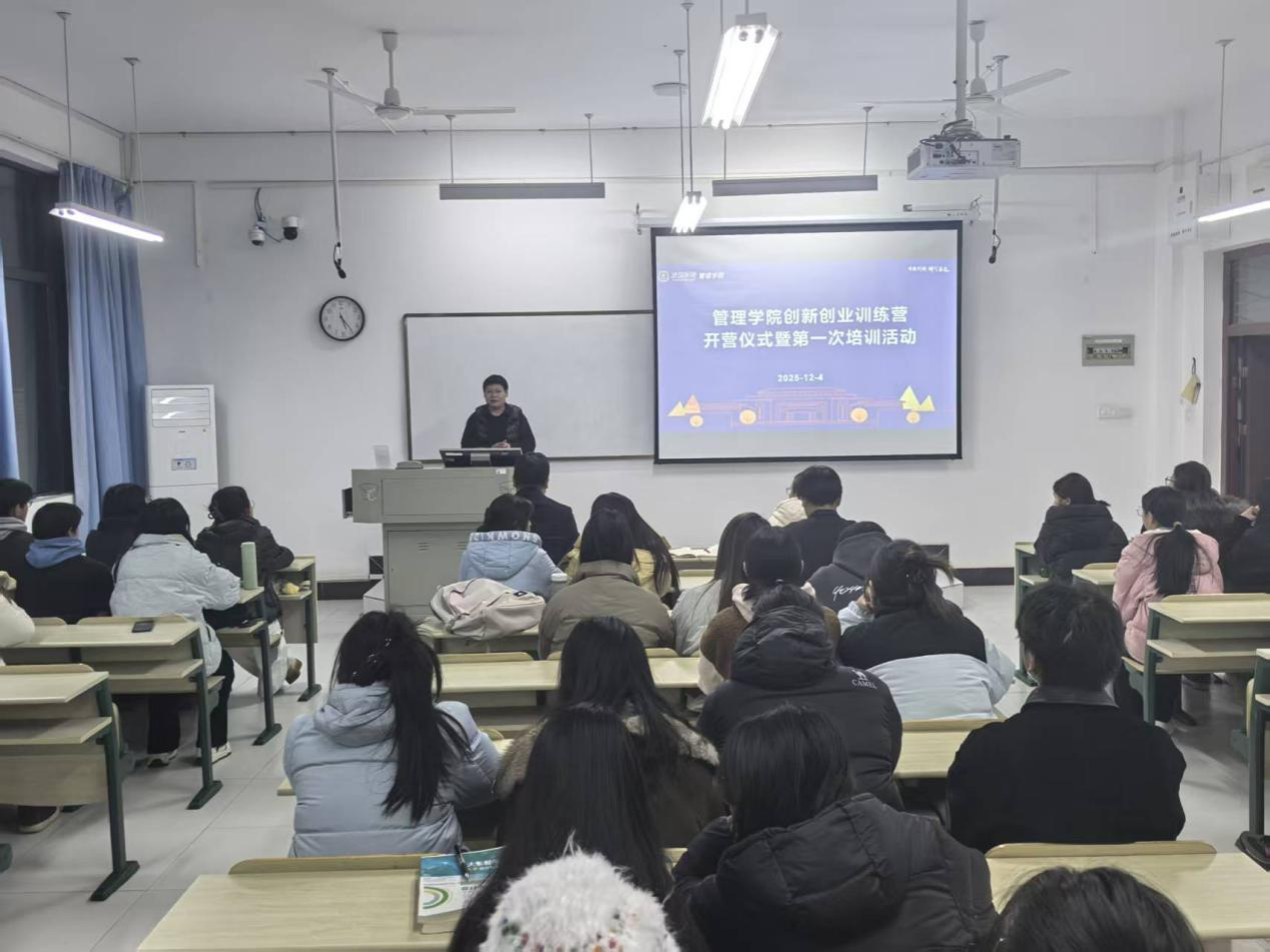12月4日,武汉学院管理学院创新训练营开营仪式暨首次培训活动在学2303教室举行。来自全院各专业的48名学生齐聚一堂,共同开启一段聚焦创新思维与创业实践的成长之旅。党总支书记王桂红参加开营仪式并致辞。