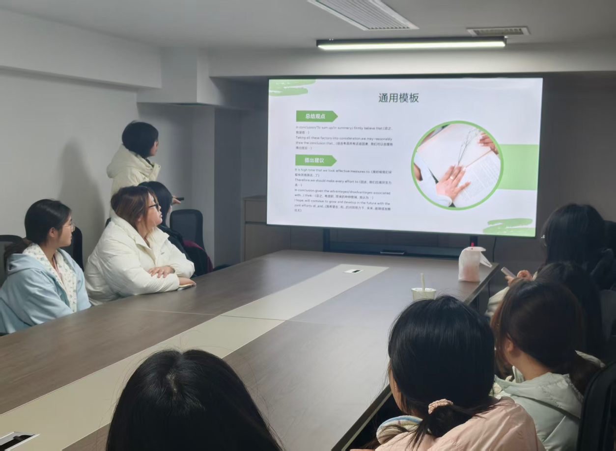 辅导会上,余梦蝶同学系统梳理了四级写作的高频考点与题型,深入讲解了破题思路、高分句型应用及常见失分点规避等实用技巧。现场同学专注聆听、踊跃提问,在热烈的互动交流中积累了宝贵经验,学习氛围浓厚。