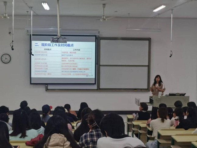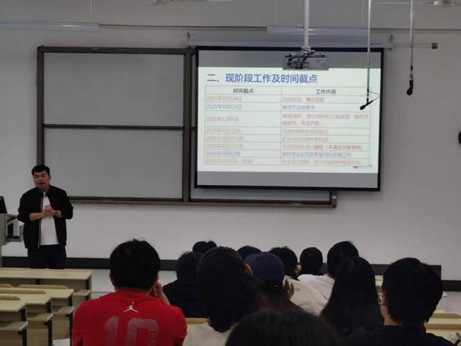 随后,张昭就毕业论文工作的具体安排、时间节点、流程规范及质量要求为同学们进行了详细解读,明确了从选题、开题、中期检查、论文撰写、查重检测到最终答辩的各个阶段任务和截止日期,要求同学们严格按照进度安排,稳扎稳打,高效推进。同时,他也对指导教师提出了严格要求,希望老师们切实履行指导职责,严格把关,悉心指导,确保论文指导质量。