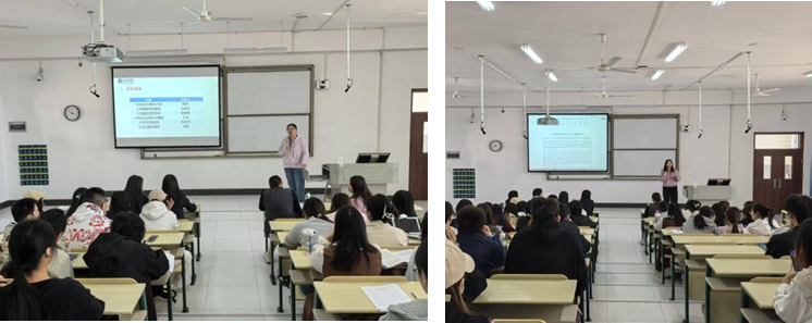 周婵老师首先为学生梳理了《毕业论文基本要求》,明确了毕业论文的整体要求与学术价值,帮助学生树立正确的写作观念。任岩岩针对《开题报告的撰写》进行了细致入微的讲解,指导学生如何精准选定研究课题、明晰研究思路。